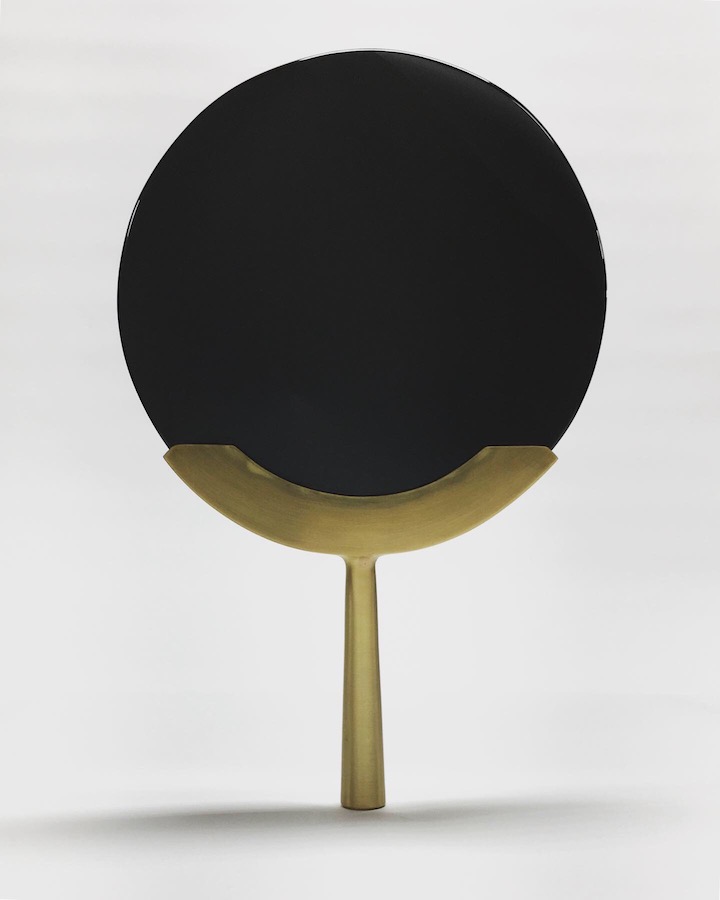 A polished obsidian and brass hand mirror that allows the user to view the sun.
